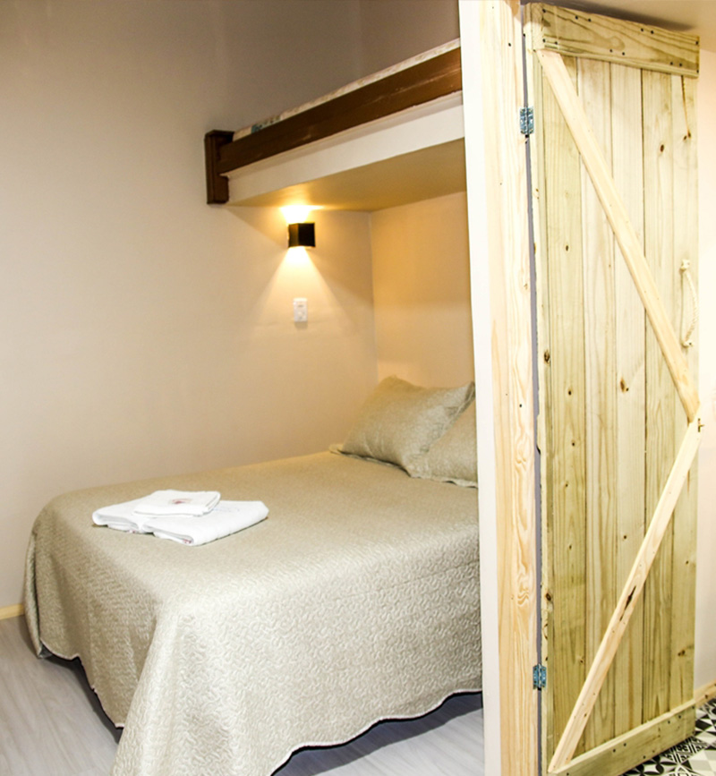 Os quartos externos são as acomodações mais recentes da Pousada. Foram idealizadas para entregar aos nossos hóspedes um pouco mais de privacidade sem abrir mão do conforto que a pousada oferece. Todas as unidades contam com banheiro privativo e cama box.